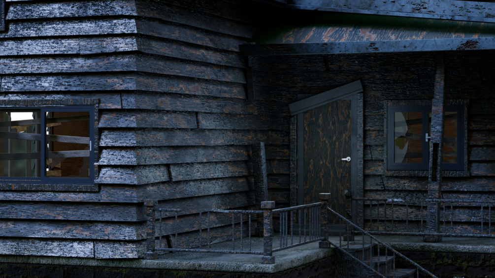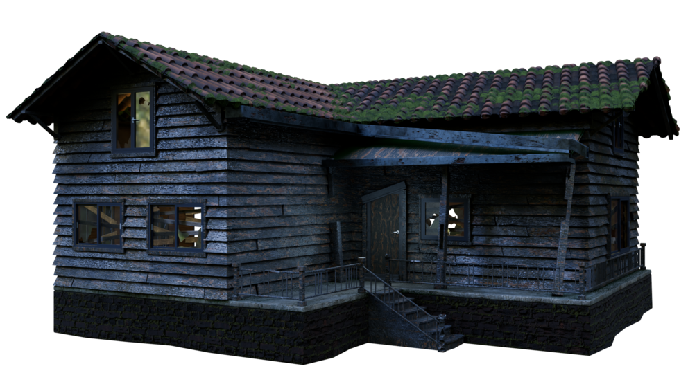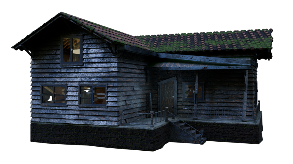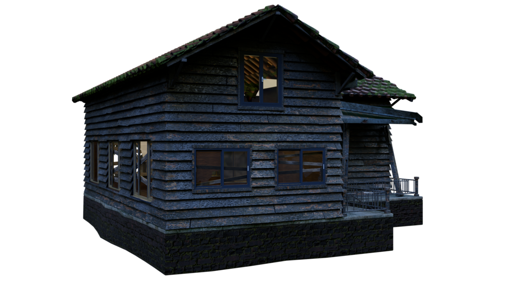 an old suburban 2 story house. can be used in close ups, used as a background prop or whatever you'd like - video game ready, made following blender guru's tutorial